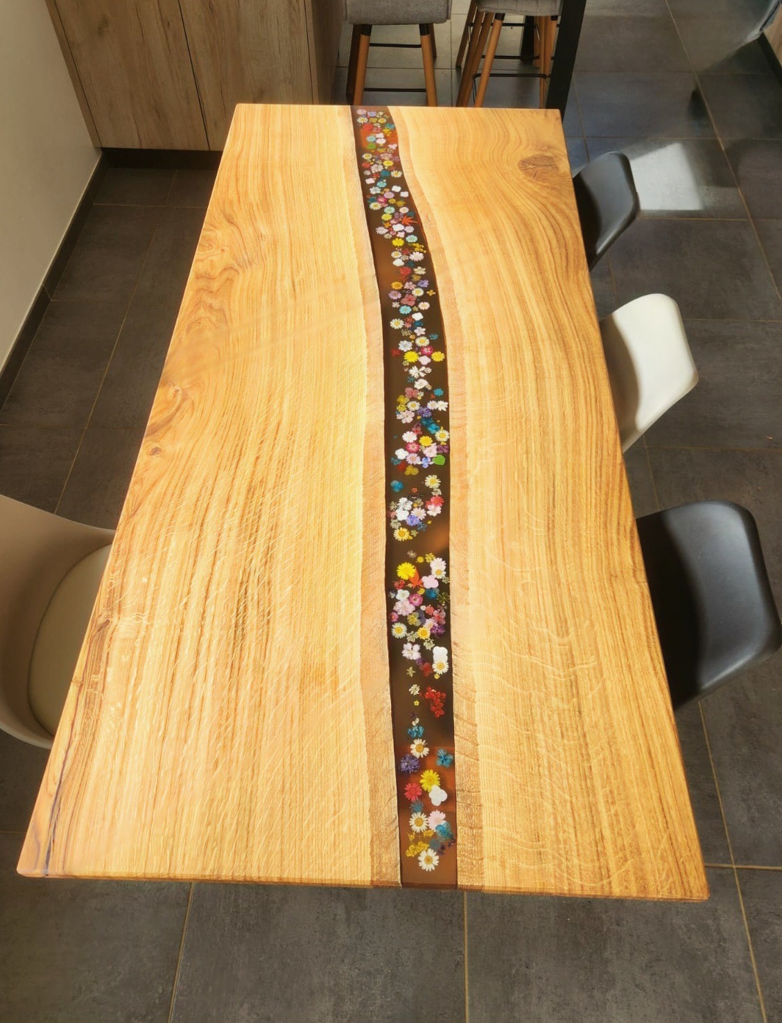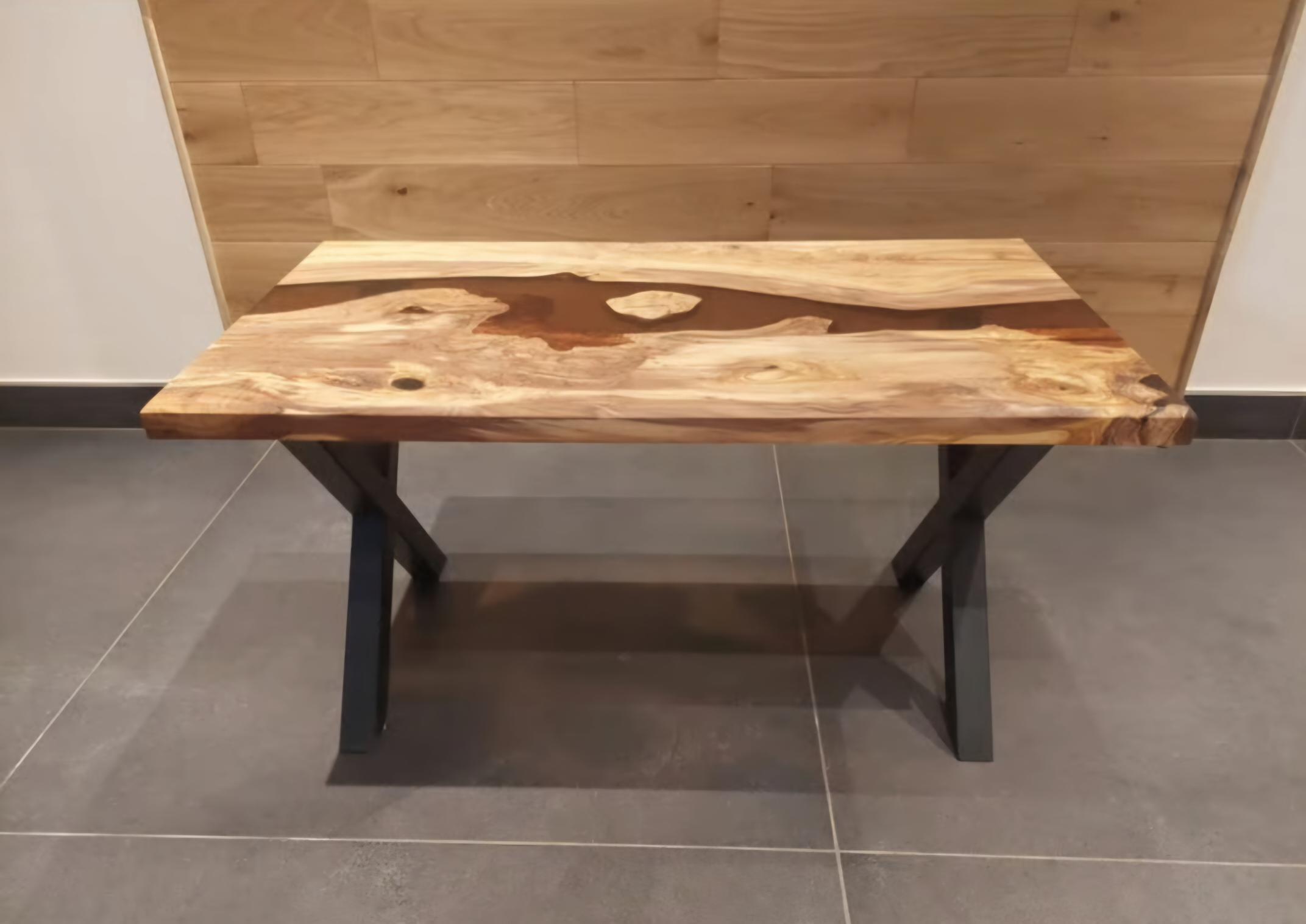Optez pour la fusion du bois et de la résine époxy pour des meubles élégants et contemporains. Nous confectionnons du mobilier unique grâce à cette technique innovante. La résine époxy apporte modernité et originalité au meuble, tout en mettant en valeur la beauté naturelle du bois.